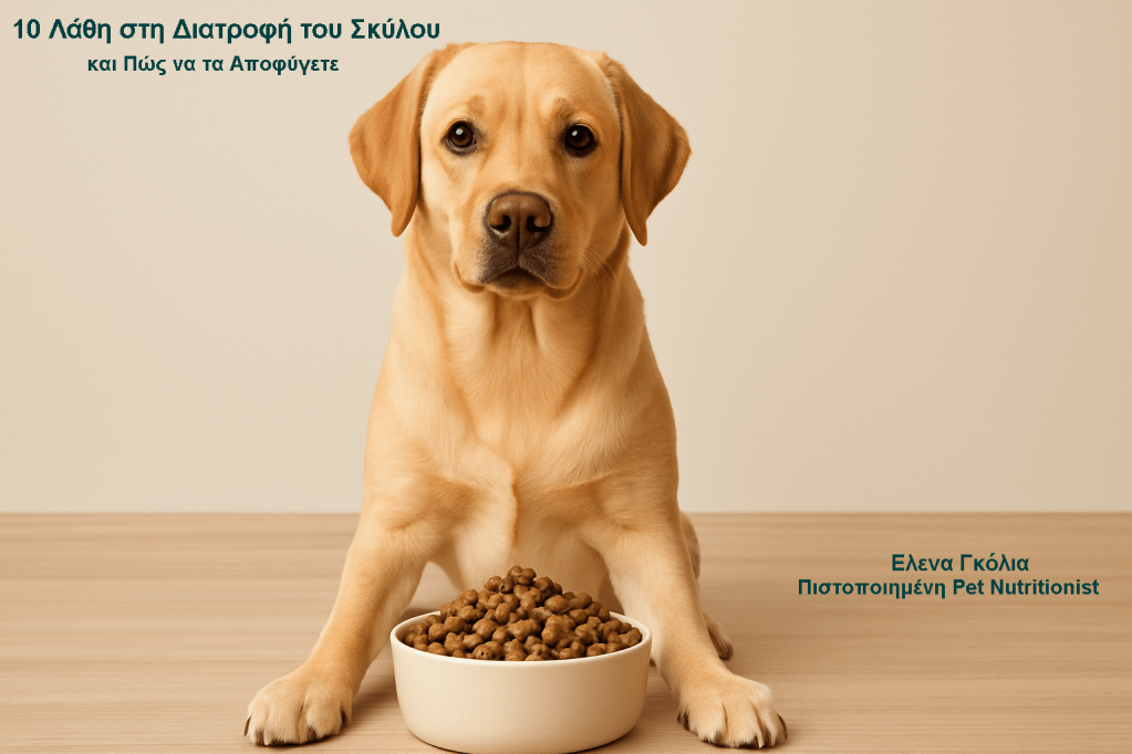 Ως πιστοποιημένη Pet Nutritionist, δημιούργησα αυτόν τον οδηγό, για να σε βοηθήσω να αναγνωρίσεις τα «10 πιο συχνά λάθη στη διατροφή του σκύλου» σου — και να τα αποφύγεις με απλό τρόπο.