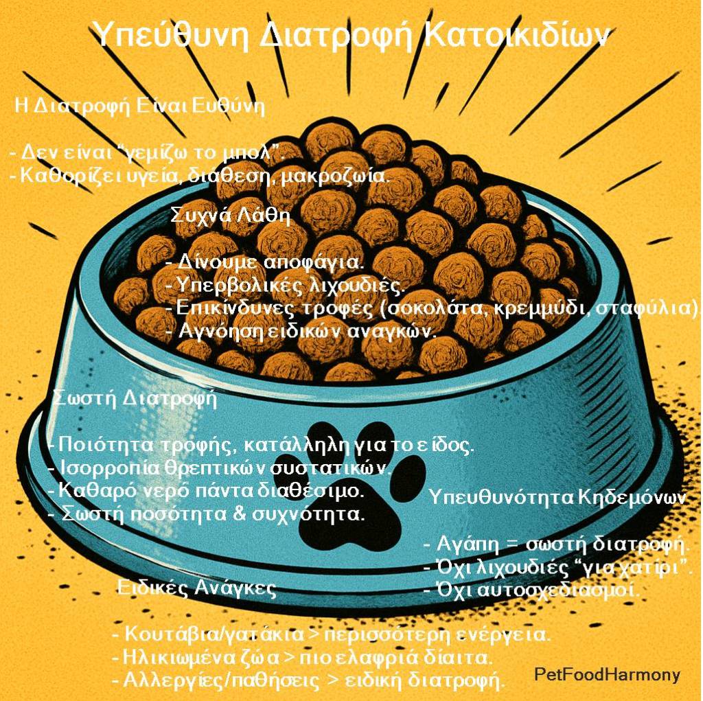 Η διατροφή δεν είναι απλώς “γεμίζω το μπολ”· είναι πράξη ευθύνης, που καθορίζει την υγεία, τη διάθεση και τη μακροζωία του κατοικιδίου μας.