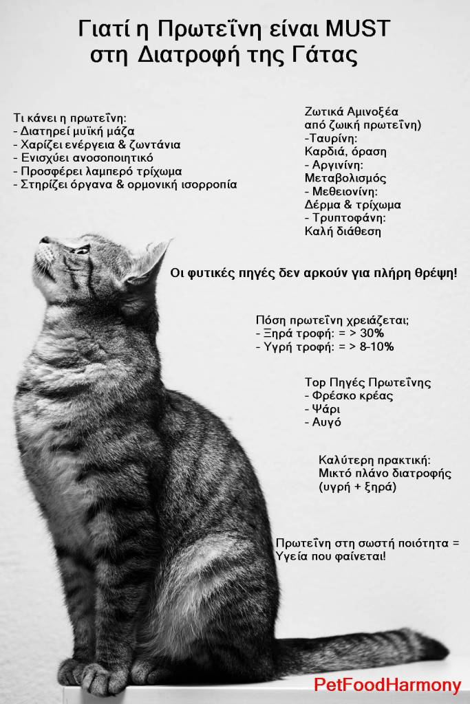 Οι υγιείς γάτες συνήθως μεταβολίζουν καλά την πρωτεΐνη. Εξαίρεση: χρόνια νεφρική νόσος. Τότε η διατροφή προσαρμόζεται με σχετική καθοδήγηση κτηνιάτρου.